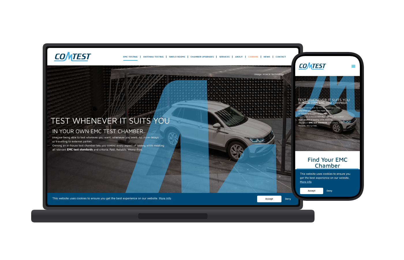 Met maatwerkoplossingen helpt Comtest organisaties wereldwijd om producten sneller en betrouwbaarder naar de markt te brengen, volledig compliant en zonder concessies te doen aan meetkwaliteit. Deze opdracht in uitgevoerd in samenwerking met The Monkey Network.